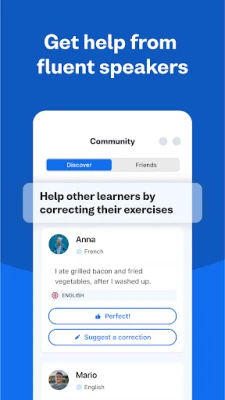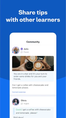 Učite španski jezik i steknite samopouzdanje već prvog dana uz ovu aplikaciju. Povežite se sa našom onlajn zajednicom i dobijajte povratne informacije o vežbama i španskom rečniku od izvornih govornika. Lako pratite šta zahteva više revizije, od španskih glagola do izgovora, i učite da brže govorite španski i druge jezike.
