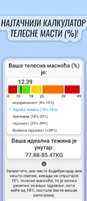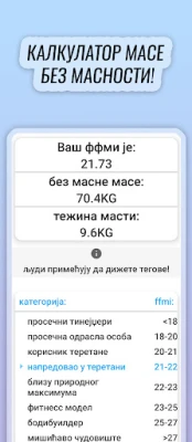 Срце ФитАпп Про лежи у његовим прецизним калкулаторима за процену телесне композиције. Откријте свој проценат телесне масти са неупоредивом тачношћу, користећи и иновативну формулу базирану на телесним мерењима која исправља недостатке традиционалних метода, као и методом калипера за мерење дебљине кожних набора. Ова функционалност не само да процењује ваш идеални састав тела већ и омогућава рачунање идеалне тежине. Додатно, пратите развој ваше мишићне масе помоћу калкулатора индекса масе без масти (ФФМИ), кључног показатеља за процену напретка и разумевање вашег мишићног потенцијала. Калкулатор снаге ће вам, пак, помоћи да дефинишете свој максимум за једно понављање (1РМ) и сигурно планирате оптерећења, подижући ваш тренинг на нови ниво.