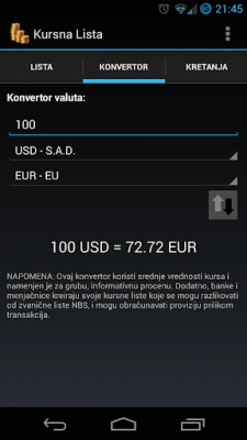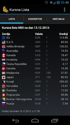 Više ne morate da pretražujete – najnovija kursna lista Narodne Banke Srbije je uvek uz vas! Aplikacija Kursna lista Narodne Banke Srbije donosi precizne i ažurne informacije o valutama direktno na vaš uređaj, osiguravajući da nikada ne propustite bitne promene. Bilo da planirate putovanje, vršite poslovne transakcije ili jednostavno pratite ekonomske trendove, ova aplikacija je vaš nezamenjiv partner. Zaboravite na komplikovane tabele i spor internet pretraživače – sve što vam je potrebno je sada na dohvat ruke, pregledno i brzo.