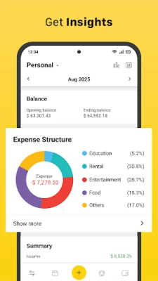 Sa Money Manager-om, beleženje svakog prihoda i rashoda traje samo nekoliko sekundi. Lako upravljajte finansijama na više računa i novčanika, kreirajte detaljne budžete sa upozorenjima kada se približite limitu, postavite ciljeve štednje i pratite njihov napredak. Aplikacija vam omogućava da nadgledate dugovanja i potraživanja uz opcije za podsetnike, pruža potpun pregled ukupnog stanja, i nudi fleksibilne kategorije za personalizovano praćenje. Uz zaštitu lozinkom, vaši podaci su sigurni, a funkcija pretrage omogućava da u trenu pronađete željeni zapis. Za dodatnu analizu ili arhiviranje, podatke možete izvesti u CSV/Excel format.