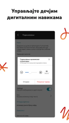 Osim što olakšava ponovno pronalaženje omiljenih sadržaja putem kartice "Гледај поново", YouTube Kids pruža sveobuhvatne alate za roditeljski nadzor koji vam daju moć da oblikujete celokupan doživljaj gledanja. Lako možete postaviti "Тајмер" kako biste osigurali da deca prave zdrave pauze i primenjuju naučeno u stvarnom svetu. U slučaju da naiđete na sadržaj koji ne odgovara vašim porodičnim vrednostima, jednostavno ga prijavite, a naš tim će ga detaljno pregledati. Google se zalaže za transparentnost i sigurnost podataka, stoga se sve informacije o privatnosti nalaze u dostupnim obaveštenjima, osiguravajući vam potpunu informisanost o načinu na koji se upravlja podacima vaše porodice, bilo da koristite Google naloge povezane sa Family Link-om ili pristupate aplikaciji bez prijave.